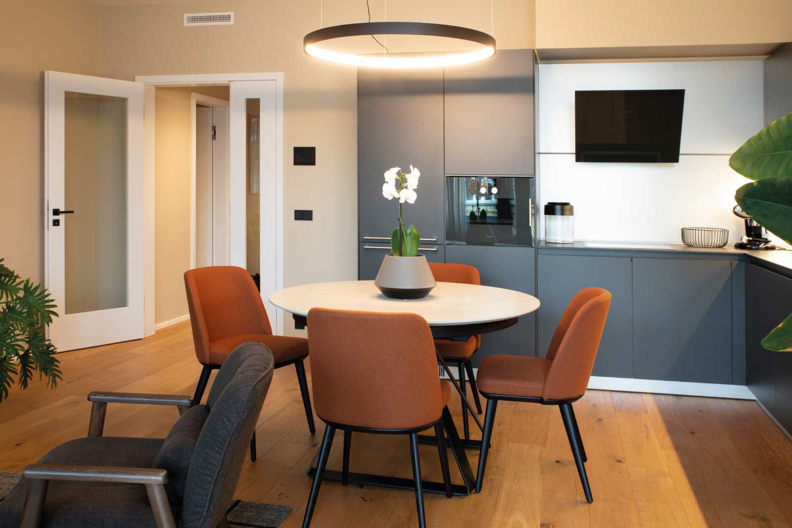 Pro elegantní uložení datových a slaboproudých prvků, byly v bytech použity multimediální rozvodnice Hager volta. Díky přehlednému uložení veškerých potřebných zařízení do rozvaděče odpadají nevzhledná klubka kabelů a změť přístrojů v obývacím pokoji. Pro efektivní odvětrání je multimediální rozvodnice opatřena perforovanými dvířky a poskytuje pro všechna chytrá domovní zařízení přehledné a čisté uložení, bez zmatku a nepořádku v kabeláži.