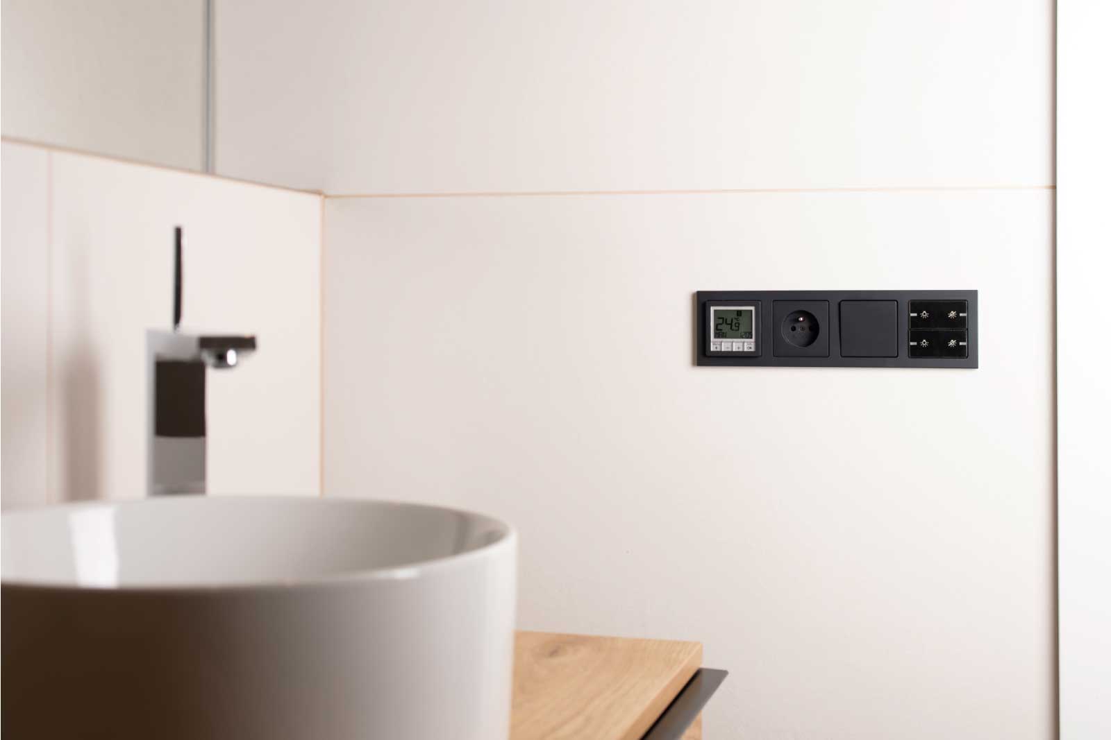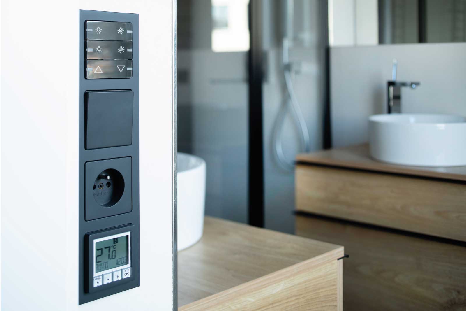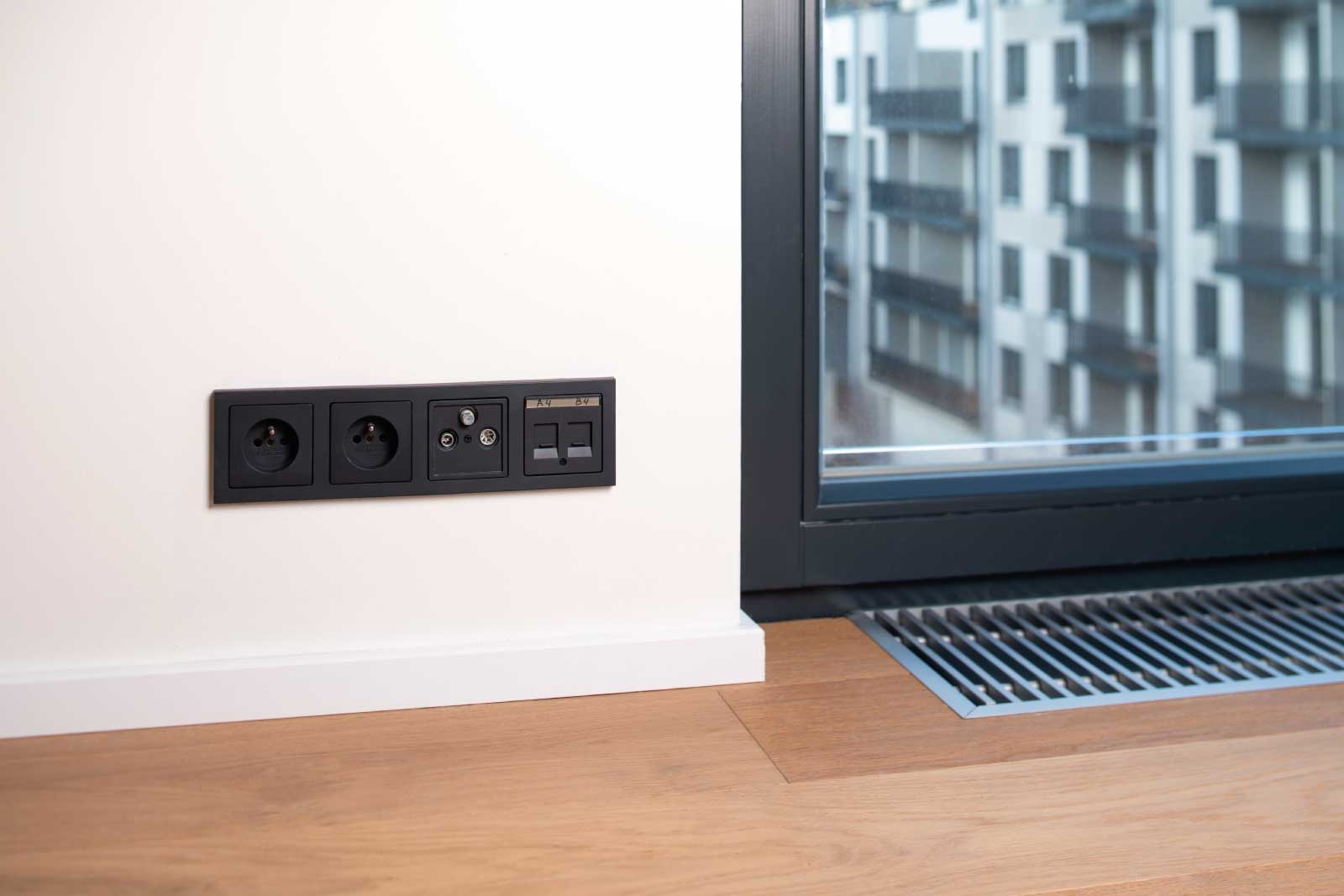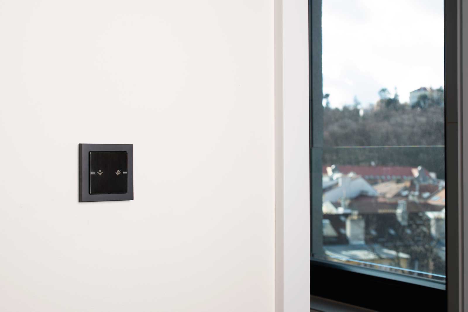 K vysokému komfortu bydlení přispívá inteligentní elektroinstalace Hager systému KNX. Elegantní ovládací prvky řídí chod žaluzií i stmívání osvětlení. Uživatelsky příjemné ovládání pomocí tlačítkových senzorů včetně přehledných displejů koresponduje s designem vypínačů a zásuvek v bytech. Ve standardu najdete antracitové spínače berker Q.3 se sametově hebkým povrchem. V rámci klientských změn se ale investor může rozhodnout i pro bílou variantu této designové řady berker. „Vypínače berker Q.3 představují střízlivou nevtíravou eleganci v našem portfoliu, nejsou to žádné extravagantní kousky, které by na sebe v interiéru poutaly pozornost. Jejich přidanou hodnotou je ale jejich speciální povrchová úprava, díky které působí na dotek překvapivým a velmi příjemným dojmem,“ vysvětluje Thomas Grund, generální ředitel společnosti Hager v České republice, jež dodala stěžejní elektroinstalační prvky i designové vypínače pro projekt NEUGRAF.