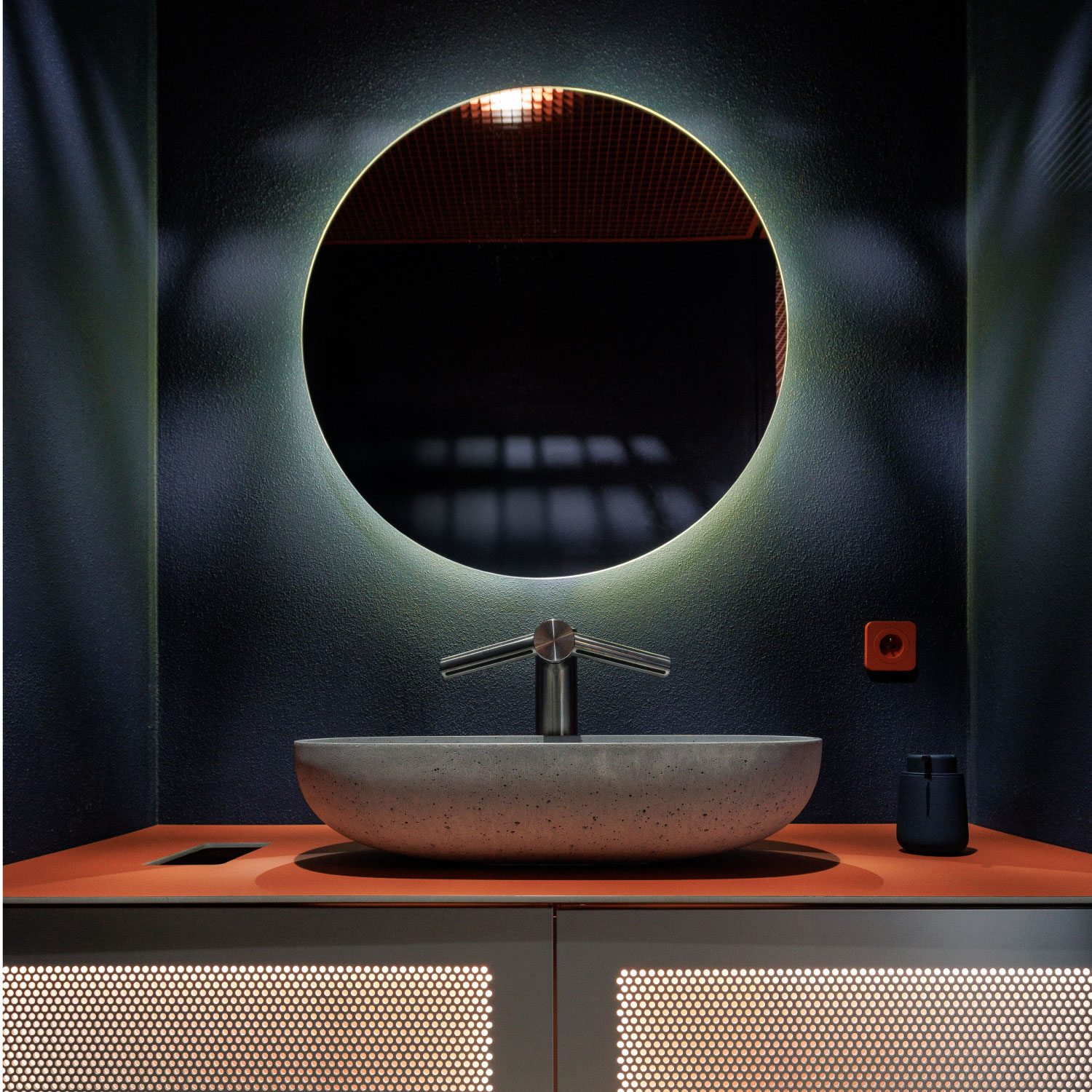 Žádný detail neušel pozornému oku architektů CISARSTUDIO, a tak i vypínače, zásuvky a další koncové elektroinstalační prvky hrají v interiéru svoji zásadní roli. V tomto sofistikovaném a harmonickém prostředí vynikají vypínače berker R.1 v zakázkově namíchané barvě Coral Red. Tyto vypínače nejsou jen funkčním prvkem, ale slouží jako estetický akcent, který přináší do prostoru osobitost a charakter. Barva Coral Red se odvolává jednak na zářivou barvu korálových útesů, ale můžeme zde vysledovat i aviatickou inspiraci barvou „Rudého barona“. Zářivý červený odstín vypínačů a zásuvek dodává interiéru dramatickou eleganci a vytváří poutavý vizuální kontrast s okolním prostředím. „Namíchat speciální barvu dle RAL vzorníku tak, aby dokonale zapadala architektovi do konceptu, to je důvod existence našeho zakázkového výrobního programu Hager Manufaktura,“ vysvětluje Thomas Grund, generální ředitel společnosti Hager Electro v České republice, do jejíhož portfolia vypínače berker patří. „Designová řada berker R.1 je jedna z našich nejmladších. Jsou to takoví naši mileniálové, kteří chtějí poutat pozornost, a tak trochu provokovat svým vzhledem. Proto jsou tvořeny kruhovou klapkou uprostřed čtvercového rámečku. Kruh uprostřed čtverce – a když ještě výsledek korunujete zářivou barvou – to už je opravdu akcent, který v žádném interiéru nepřehlédnete“, zamýšlí se s úsměvem Thomas Grund. „Tento výrazný detail ukazuje, jak malý prvek může mít velký dopad na celkový designový koncept. A tyto vypínače odvážně křičí do světa, že chtějí v každém interiéru hrát jednu z hlavních rolí,“ doplňuje Katrin Grund, zakladatelka pražského concept store MONOBRAND, který vypínače a zásuvky do projektu dodával.